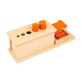Use of this material helps the child develop his problem solving skills, hand-eye coordination, size discrimination and visual perception. The easy to pull slide and action of the cylinders motivates the child to repeat the activity. Measures: 17 ¾”x 4 ¾”x 4 ¾”. Ages 2 ½ -4 years.