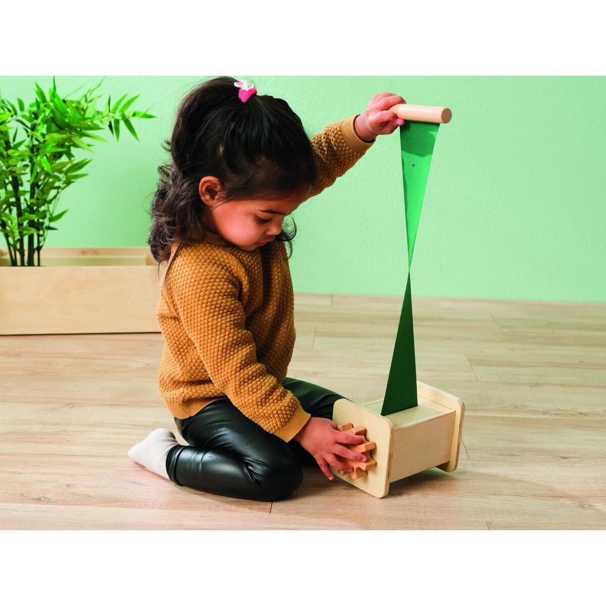 By pulling fabric from the box and winding it back, cause and effect become tangible. Wrap the Ribbon trains motor control and stimulates coordination. The combination of movement and repetition maintains attention and encourages perseverance. This playfully supports the development of spatial awareness. 6 ¾”x4 ¼” overall; 4 ¼” high. Ages 29 - 36 months.